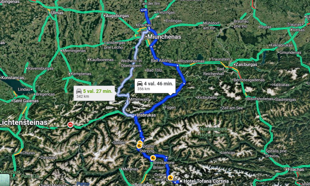 Kryptis: Cortina d’Ampezzo → Hohenkammer (Miuncheno apylinkės)